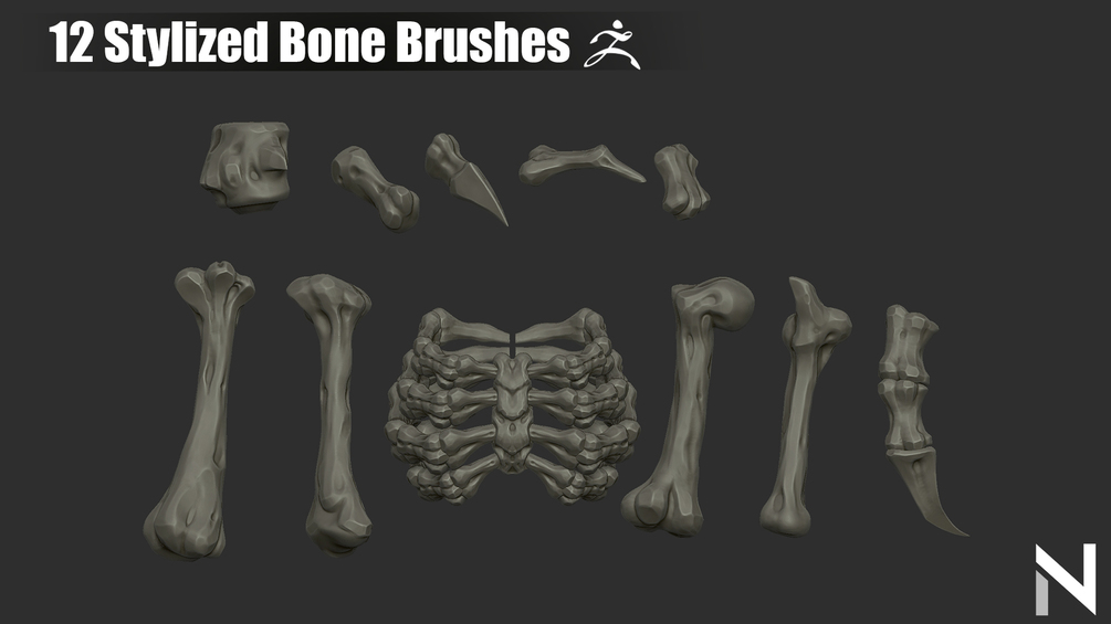 12 Stylized Bone Brushes for Zbrush